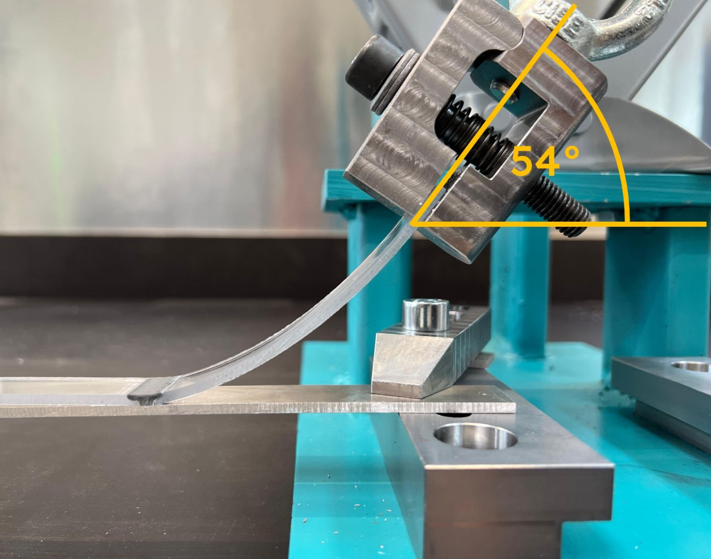 Since PSW operates with very low process forces of less than 2 kN, even very thin sheets or foils can be joined without visible distortion. The process force is required on the one hand to guide the stirring pin through the polymer onto the metal surface, and on the other hand to press the shoe against the polymer surface to prevent leakage of the molten polymer. By comparison, friction stir welding for the production of a cooling channel of a battery tray requires up to 10 kN of contact force. The lower forces make it possible to design components even lighter, as they only have to withstand low loads.