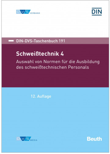 Im Juni 2020 ist das DIN-DVS-Taschenbuch 191 „Schweißtechnik 4: Auswahl von Normen für die Ausbildung des schweißtechnischen Personals“ in einer neuen Auflage erschienen. In diese 12. und überarbeitete Ausgabe wurden neben vielen aktualisierten Normen erstmals auch wichtige DVS-Merkblätter und -Richtlinien mit aufgenommen, die sich im Schwerpunkt der Qualitätssicherung beim Schweißen widmen.