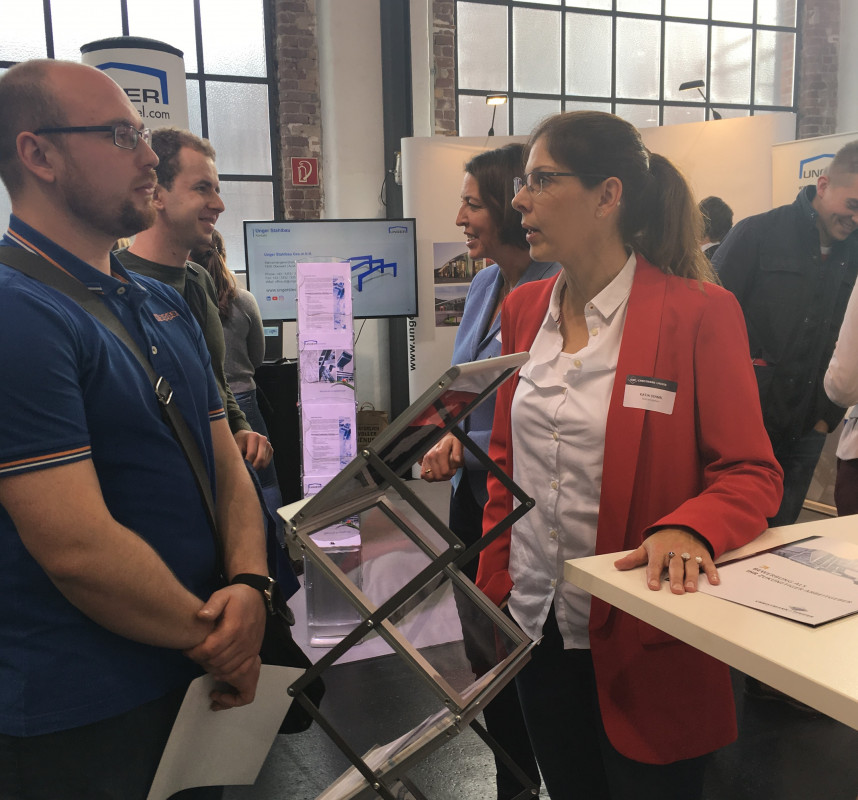 Topf und Deckel fanden bei der 1. Berufsfachmesse Stahlbau am 23. November 2019 im Areal Böhler in Düsseldorf zusammen. Über 100 junge Ingenieure, Berufsschüler und Studierende kamen in die alte Industriehalle, um sich über über die beruflichen Perspektiven des Stahlbaus zu informieren. Von diesem Austausch werden Aussteller und Besucher weiter profitieren.