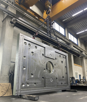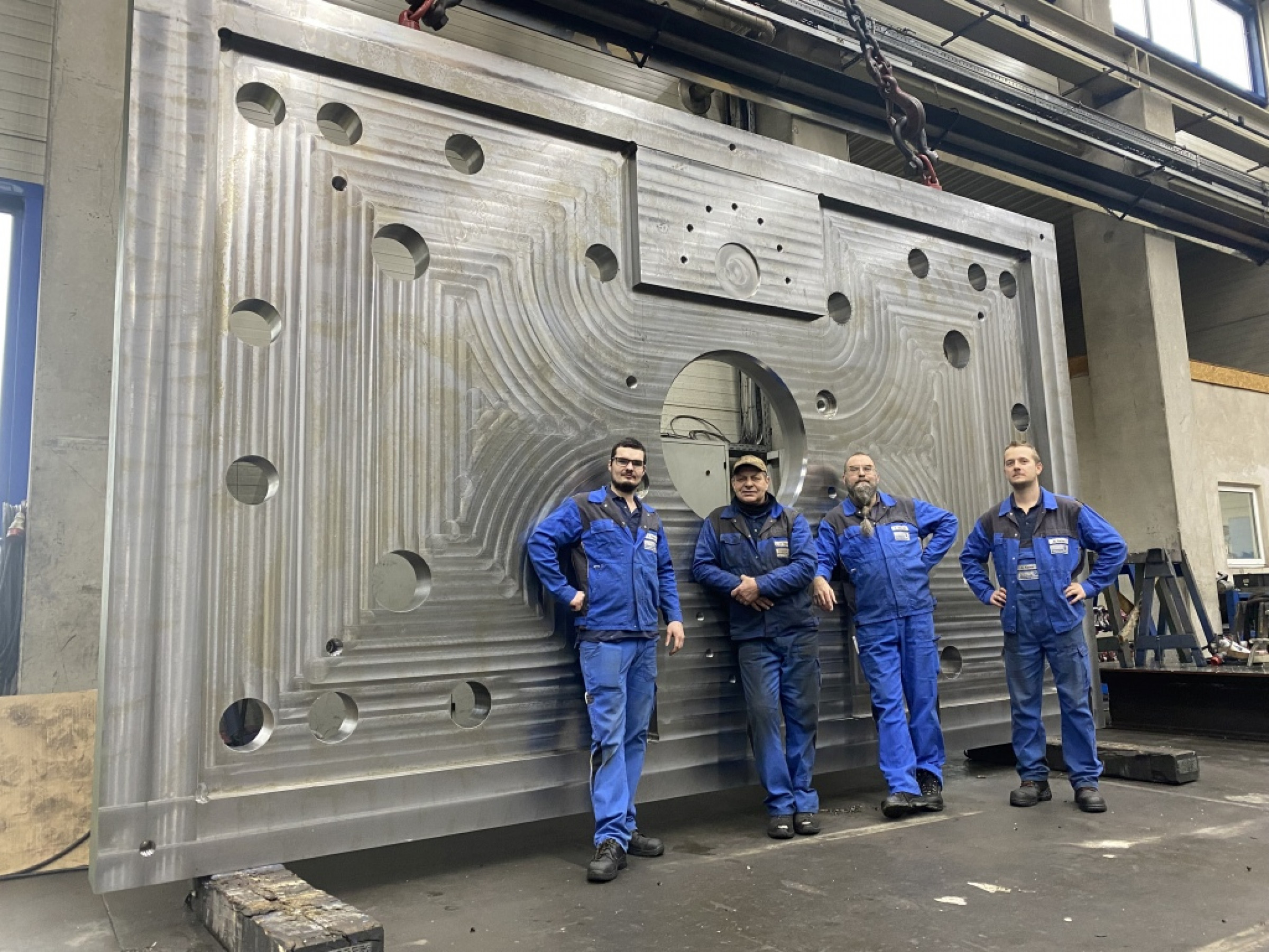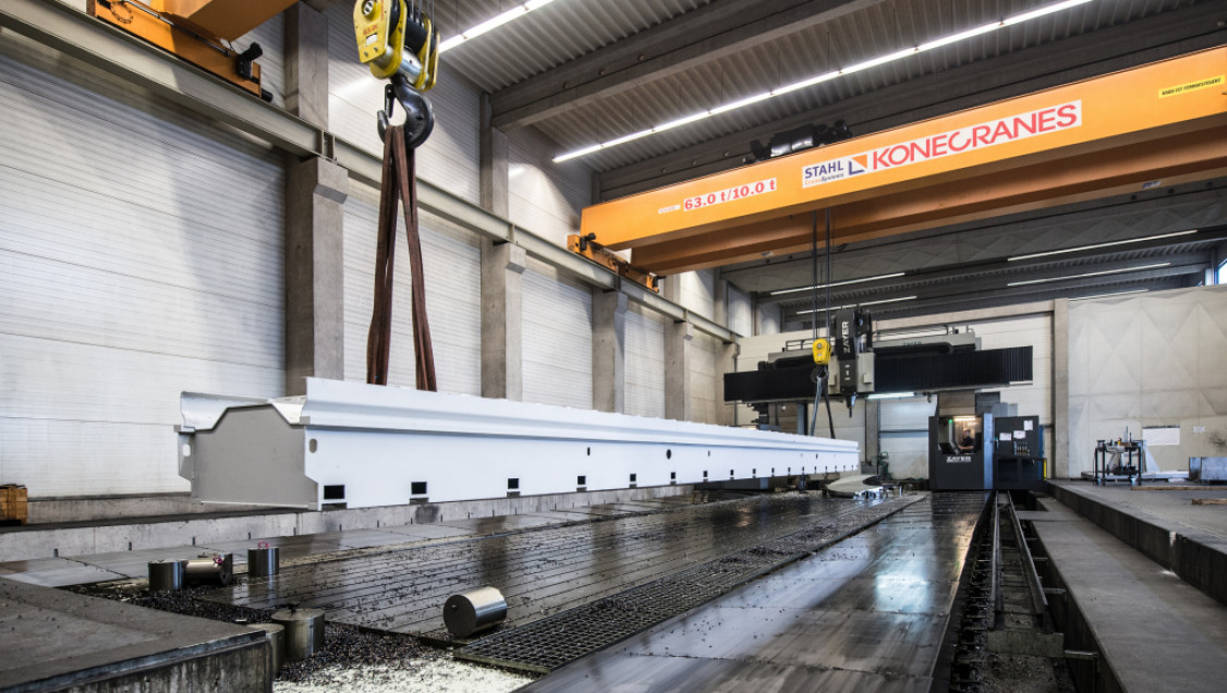 Für die Großteilefertigung stehen in Windischeschenbach die größten Fräsmaschinen, die es für derartige Bearbeitungen in Europa gibt. Die größte von ihnen, eine Zayer GMCU 20000, bietet Verfahrwege von 20.000 x 7.500 x 2.950 mm. Der Durchlass dieser Portalmaschine liegt bei einer Breite von 4,80 m. Die Maschine ermöglicht das Handling von Bauteilen bis zu 140 t. Bei deren Kauf gehörte INGERSOLL zu den Erstausstattern für die Werkzeuge. „Die große Erfahrung, die INGERSOLL im Bereich der Zerspanung von Großteilen hat, konnten wir gleich mithineinnehmen“, erläutert Martin Höck. Der Windschiegl-Geschäftsführer war früher in einer Großteilefertigung tätig und hat mit dem Werkzeughersteller aus Haiger seit über 25 Jahren gute Erfahrungen gemacht. Daher platzierte er die Werkzeuge jetzt auch in seinem eigenen Unternehmen.