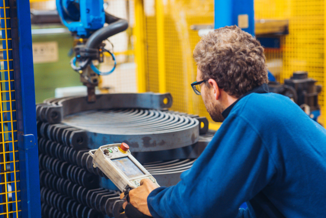 Die charakteristischen Rahmenbedingungen beschreibt Christian Hammerschmid jun. dabei so: „Wir haben weder Einzelteile noch eine Massenproduktion.“ In der Regel liegen die Stückzahlen der von Rohrbefestigungen Hammerschmid gefertigten Teile zwischen 50 und 5.000 Stück. Eine Automatisierung ist in diesem Stückzahlbereich keineswegs selbstverständlich. Trotzdem wagten sie bei Rohrbefestigungen Hammerschmid 2015 im Zuge eines Neubaus den Einstieg in die Robotik. „Ein Schritt in die Zukunft“, blickt man zurück.