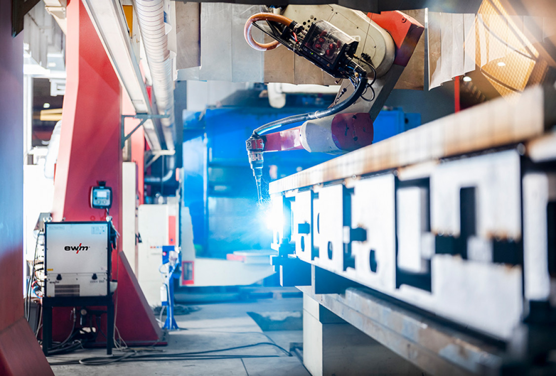 Schwarzstahl mit einer Dicke von 300 Millimetern und mehr, Längen von bis zu 20 Metern und ein Gesamtgewicht von bis zu 100 Tonnen: In diesen Dimensionen ist die ISW GmbH Steel Components aus dem niederösterreichischen Ennsdorf zu Hause. Der Lohnfertiger hat sich auf die Herstellung großer, schwerer und komplexer Grundrahmen für Maschinen und Anlagen spezialisiert. Die Schweißnähte werden hauptsächlich im MAG-Schweißverfahren mit hohen Strömen und als Mehrlagenschweißungen ausgeführt. Das ist eine echte Anforderung an die Stromdüse des Schweißbrenners, die neben anderem für die Qualität der Schweißnähte mitverantwortlich ist. Da die Kunden eine umfassende Qualitätssicherung und Rückverfolgbarkeit fordern, setzt ISW auf die Schweißtechnik von EWM – von den Schweißgeräten über die Schweißprozesse und die Qualitätssicherung mit ewm Xnet 2.0 bis hin zu den Schweißbrennern und den Stromdüsen.