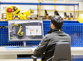 Die auf dem Handbediengerät FlexPendant vorinstallierte ABB SafeMove-App beinhaltet Sicherheitsfunktionen wie Geschwindigkeitsbegrenzungen, Stillstandsüberwachung und Überwachung der Werkzeugausrichtung, um eine enge Zusammenarbeit zwischen Robotern und Menschen ohne sperrige Umhausungen oder Sicherheitszäune zu ermöglichen.