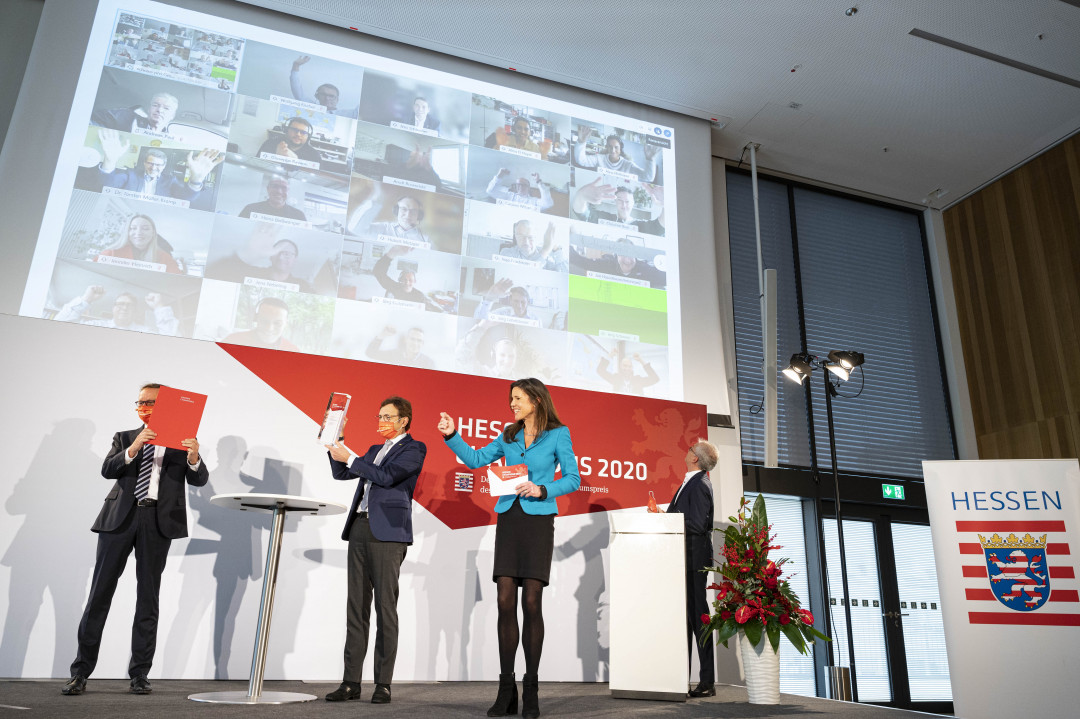Die normalerweise bis auf den letzten Stuhl gefüllte Veranstaltung, die in diesem Jahr zum 20. Mal stattfand, war trotz der Gegebenheiten nicht minder spannend. Die drei Gewinner aus den Kategorien Weltmarktführer, Innovation (Alfred Pracht Lichttechnik GmbH) und Jobmotor (Alnatura Produktions- und Handels GmbH) wurden von Wirtschaftsminister Tarek Al-Wazir, MBGH-Chef Jürgen Zabek (Mittelständische Beteiligungsgesellschaft Hessen mbH) sowie dem Präsidenten der Vereinigung der hessischen Unternehmerverbände, VhU, Wolf Matthias Mang vorgestellt und verkündet.