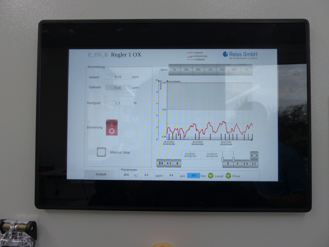 Der Prüfstand ist dafür ausgelegt, elektrochemische Sensoren von Reiss im Betrieb zu testen. Dieser kann sowohl in der Entwicklung wie auch in der Qualitätsprüfung der Sensoren eingesetzt werden. Die zu prüfenden Sensoren können eine Bandbreite an Desinfektionsmitteln und Desinfektionsnebenprodukten in einem Konzentrationsbereich von 0,05 ppm und 20 % im Messwasser erfassen. Hierzu zählen Chlor, Chlordioxid, Ozon, Peressigsäure, Wasserstoffperoxid, Brom und Chlorit.