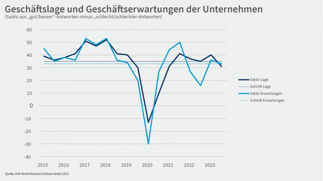 AHK World Business Outlook Herbst 2023: Licht und Schatten im internationalen Geschäft