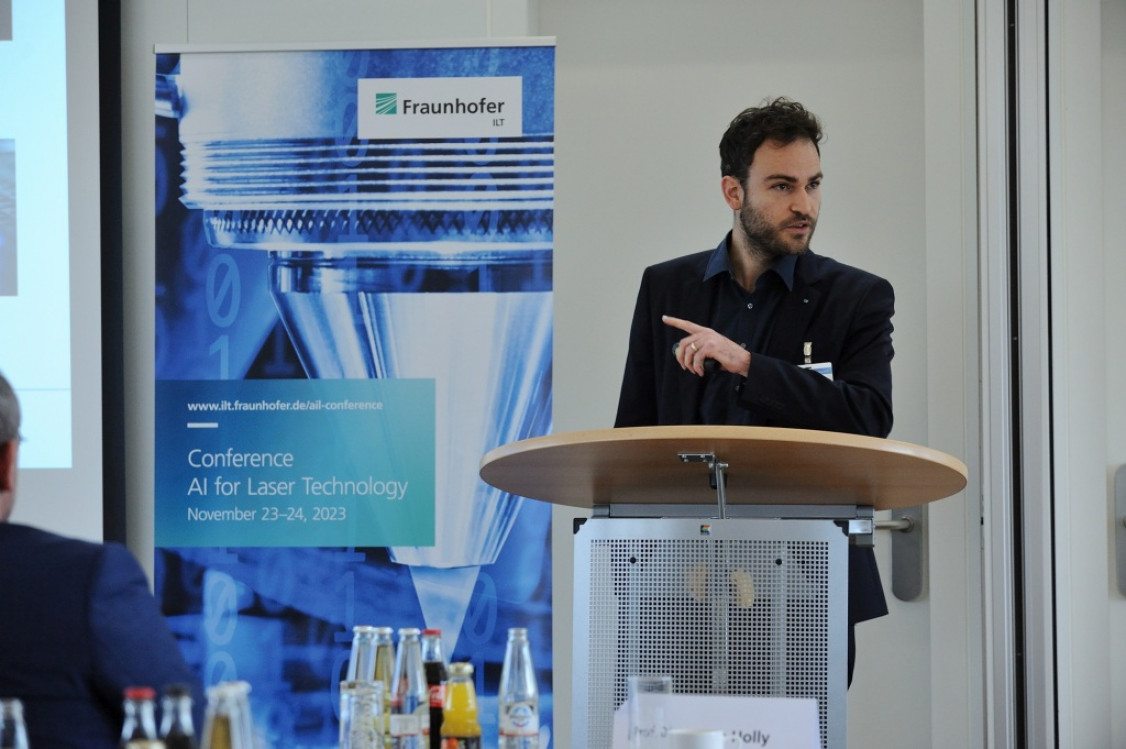 „Unsere AI setzt im Design optischer Systeme in Sekunden um, wofür klassische Algorithmen bisher Stunden oder Tage brauchten oder gar keine Lösungen finden“, berichtete Konferenzleiter Prof. Carlo Holly auf der dritten „AI for Laser Technology Conference“, zu der das Fraunhofer ILT am 23. und 24. November 2023 eingeladen hatte. Als Leiter der Abteilung Data Science und Messtechnik des Fraunhofer ILT und Inhaber des Lehrstuhls für Technologie Optischer Systeme TOS der RWTH Aachen University befasst sich Holly Tag für Tag mit datengetriebenen Innovationen. Doch das aktuelle, von Artificial Intelligence (AI) forcierte Innovationsgeschehen sprengt auch aus seiner Sicht Dimensionen. „Das Potenzial von AI geht über das reine Monitoring und die Steuerung von Laserprozessen hinaus: Wir können damit den Weg zu einer First-Time- Right-Production ebnen“, sagte er. Wenn man das Instrumentarium moderner Mess-und Sensortechnik clever mit AI-Methoden kombiniere, lasse sich Maschinen eine vom Start weg fehlerfreie Produktion oder das autonome Reagieren auf Änderung im Prozess antrainieren. „AI hat das Potenzial Regelkreise zu schließen. Lernende Maschinen, die sich im Prozess anhand fortlaufender Datenauswertung selbst nachjustieren, rücken in den Bereich des Machbaren“, so Holly.