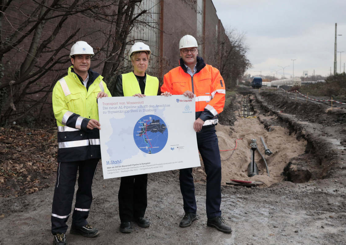 Air Liquide stellt Wasserstoff-Pipeline zu thyssenkrupp Steel in Duisburg fertig