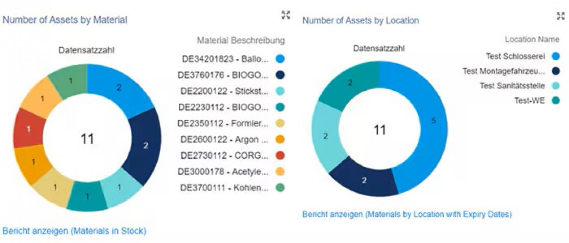 Neben dem Standort liefert das Managementsystem spezifische Informationen zu jedem Behälter, wie Materialbezeichnung und -nummer, Fülldatum, Charge oder Produktdatenblatt. Umfangreiche Auswertungs-, Such- und Administrationsfunktionen vereinfachen die Optimierung der Gasbehälterbestände zusätzlich: So können z. B. Bestandslisten, Haltbarkeiten, Standzeiten oder Mindest- und Langzeitbestände online oder als Excel-Download ausgewertet werden.