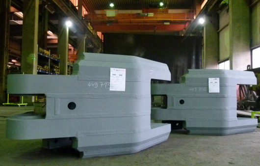Diese Kompetenz war auch bei der Fertigung von Zangenkopf und Zangenschenkeln des Schmiedemanipulators für den amerikanischen Kunden gefordert. Die Geometrie der bei dem Kunden eingesetzten Presse erforderte eine anspruchsvolle Sonderkonstruktion der Zange. Für Standardzangen setzt der Maschinenbauer Gussteile ein. Bei Sonderanfertigungen wie diese Zange hingegen vertraut er auf Schweißkomponenten von Jebens. Trotz ihrer ungewöhnlich flachen Form hält die Zange dieses Manipulators Teile mit Gewichten von bis zu 900 kN.