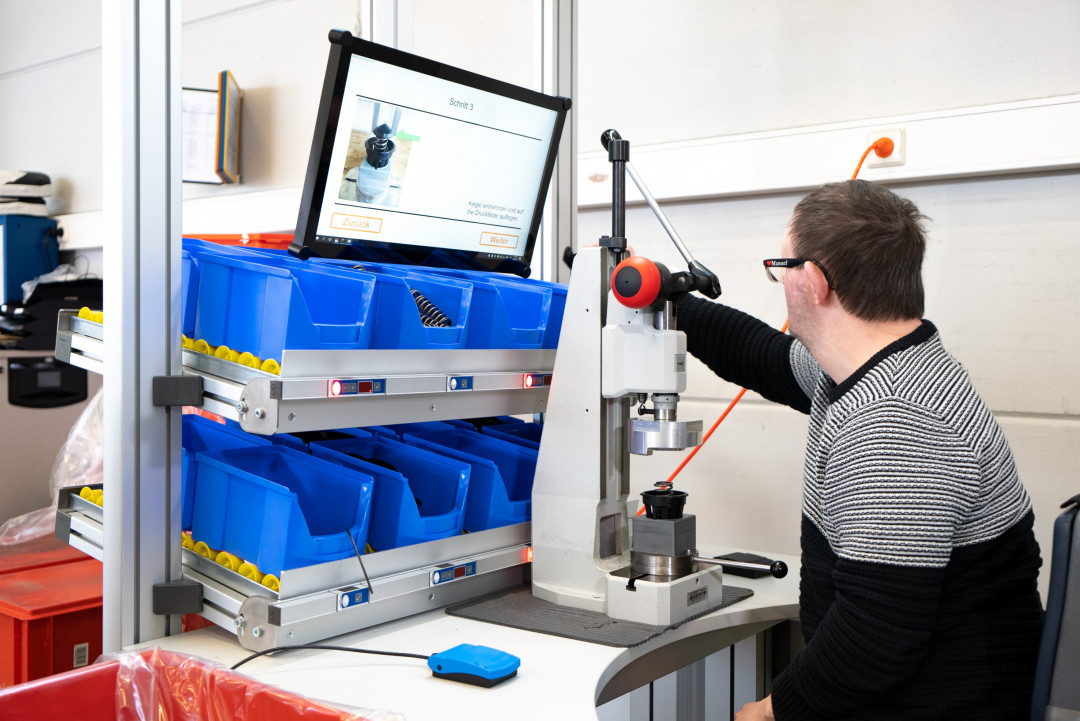Das Assistenzsystem erleichtert auch wesentlich die Schulung neuer Arbeitskräfte. Dies ist sowohl vorteilhaft bei rotierendem Personaleinsatz in der Produktion, als auch beim Anlernen von Menschen mit Einschränkungen. So oder so ein Gewinn für Mensch und Unternehmen.