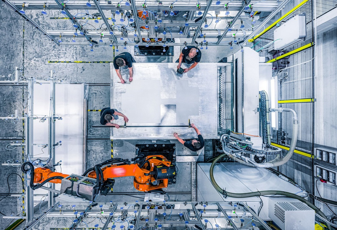 Sehr smart auch das: Bisher waren wir baulich auf vier Meter Platinenlänge begrenzt. Die neuen großen SUV oder auch LKW benötigen aber größere Bleche. Durch eine neue Art des Platinenhandlings können wir nun auch über vier Meter lange Platinen fräsen. Und das ebenso präzise, wie man es
