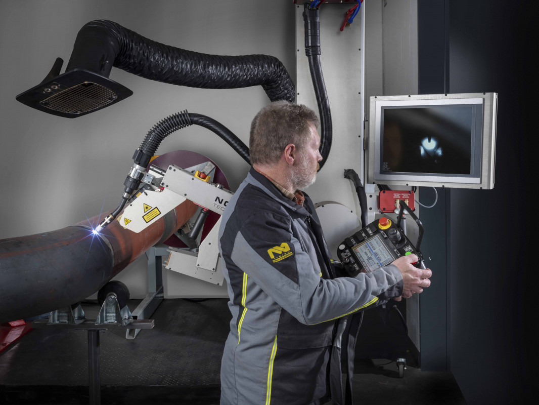 - Ein Rohrschweiß-Cobot, mit dem sich schnell und höchst präzise auch dicke Rohre bis 1,50 Meter Durchmesser schweißen lassen.