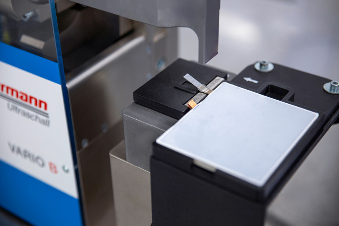 Sowohl bei der Vor- als auch bei der Hauptschweißung sind feste, stoffschlüssige Verbindungen notwendig, um die Funktionsfähigkeit der Batteriezellen zu gewährleisten. Werden einzelne Folienschichten nicht vollständig miteinander verbunden oder kommt es zu Rissen im nur wenige Mikrometer dicken Material der Folien, führt dies zu Ausschuss und damit zur Entsorgung der gesamten Zelle. Die eingesetzten Ultraschall-Schweißmaschinen von Herrmann bieten für diese Verbindungen einen stabilen Prozess. Die Systeme des Typs HiS VARIO B 20 kHz wurden speziell für die Verschweißung von Batterieapplikationen mit mehrlagigen Folien entwickelt und reduzieren den Produktionsausschuss und damit die Produktionskosten.