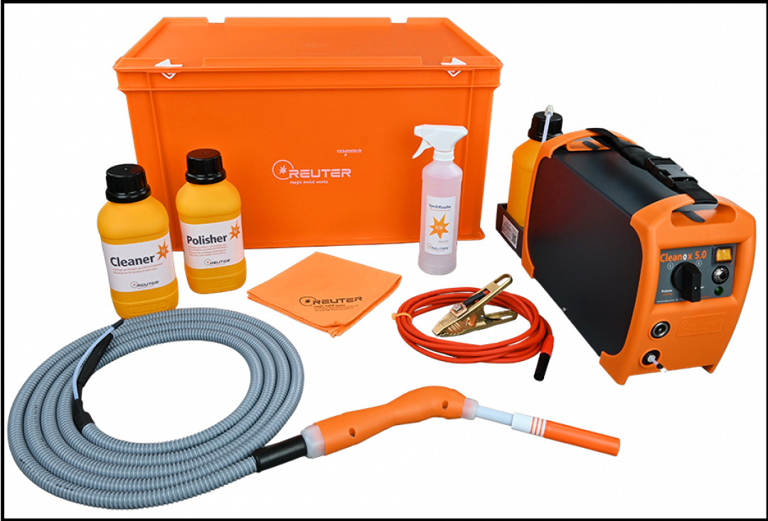 Die Schweißnahtreinigungsgeräte der Cleanox-Familie aus dem Hause Reuter in Erkrath überzeugen mit Leistung bei gleichzeitig geringem Gewicht: 80 A Dauerstrom bei 100 % Einschaltdauer und nur 5 bis 8 kg Gewicht.
