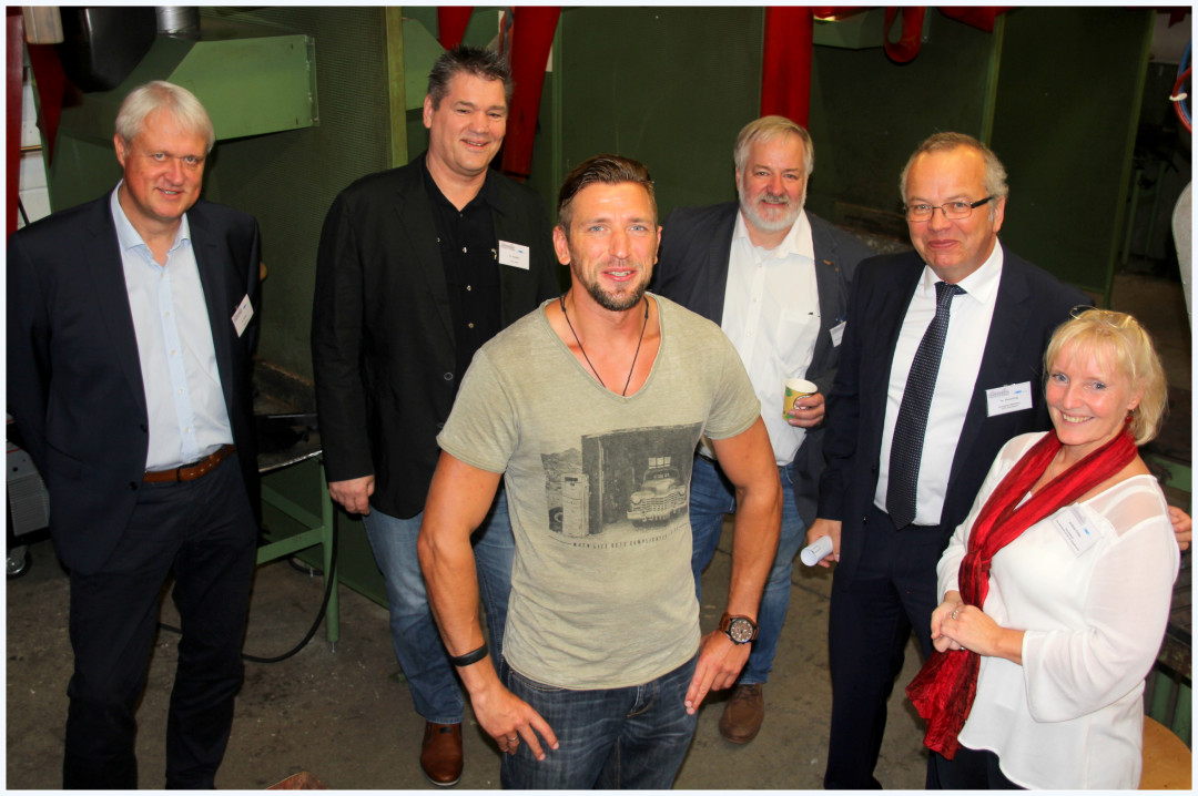Freuen sich über die Anerkennung als DVS-zugelassene Bildungseinrichtung: (v.r.n.l.) Andrea Fidan (Schulleiterin der BfM), Dr.-Ing. Roland Boecking (Hauptgeschäftsführer des DVS), Silvio Freese (Vorsitzender des DVS-Bezirksverbands Bremen), Lars Weber (Ausbildungsmeister an der BfM), Mario Schoettler (SLV Nord gGmbH), Jörg Schäfer (IHK Bremen) - © Carsten Neumann/BfM