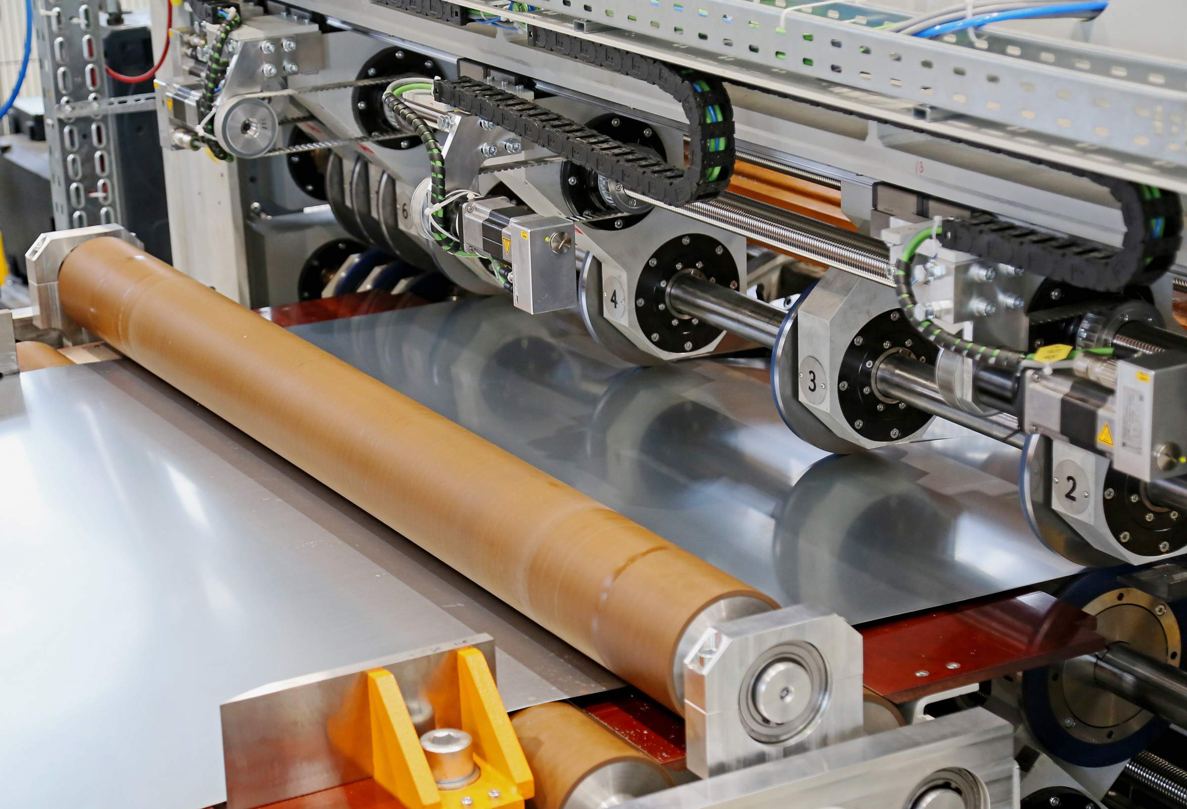 Einer der zentralen Aspekte, die der BSH bei der neuen Coilspaltanlage besonders wichtig waren, ist die eigens entwickelte, vollautomatische Längsteilschere. „Dank der Automatik lassen sich die Messer erstens völlig unkompliziert auf neue Coilbreiten zwischen 400 und 1.620 Millimeter einstellen“, erklärt Radloff. „Zweitens schneidet die Schere bis zu sieben Spaltbänder – der branchenübliche Durchschnitt liegt lediglich bei zwei bis drei Coilstreifen.“ Dabei handelt es sich um eine technologische Innovation, mit der die beiden Unternehmen neue Industriestandards setzen. Um eine exzellente Performance der Anlage sicherzustellen, nahm b+s noch vor Ort Nachbesserungen an dem automatisierten Verstellsystem der Messer vor.