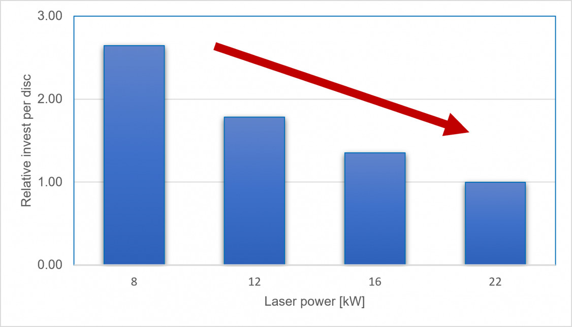 Diodenlaserspezialist Laserline hat den Prozessaufbau dieses Verfahrens gemeinsam mit seinen Technologiepartnern zur Serienreife ausentwickelt und dabei nicht zuletzt auch die Integrationsfähigkeit in Industrie 4.0-Produktionsumgebungen sichergestellt. Unter Einsatz von Diodenlasern mit OPC UA-Schnittstellen und bis zu 22 kW Ausgangsleistung werden pulverbasierte High-Speed-Beschichtungsprozesse realisiert, bei denen pro Bremsscheibe teilweise ein Prozesszeitraum von unter einer Minute zu veranschlagen ist. Das ermöglicht eine Massenfertigung, die das Beschichten von Bremsscheiben für alle KFZ-Marktsegmente erschwinglich macht. Durch flexiblen Einsatz der Beschichtungsswerkstoffe lassen sich beispielsweise selbst für Fahrzeuge im mittleren und unteren Segment sehr wirkungsvolle und gleichzeitig kostengünstige Beschichtungen verwirklichen. Darüber hinaus beeinflusst auch die Systemkonfiguration den Preis. So erhöht sich mit zunehmender Laserleistung der Durchsatz, was die Anzahl erforderlicher Beschichtungsanlagen reduziert, Produktionsfläche spart und so letztlich das relative Investment pro Scheibe deutlich verringert.