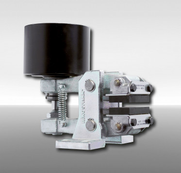 Hochgradig standardisiert ist die RINGSPANN-Bremse vom Typ DH 020 PFK. Sie wird pneumatisch betätigt und federgelüftet, eignet sich für 12,5 mm dicke Bremsscheiben und wird rechtwinklig zur Bremsscheibe montiert. - © RINGSPANN