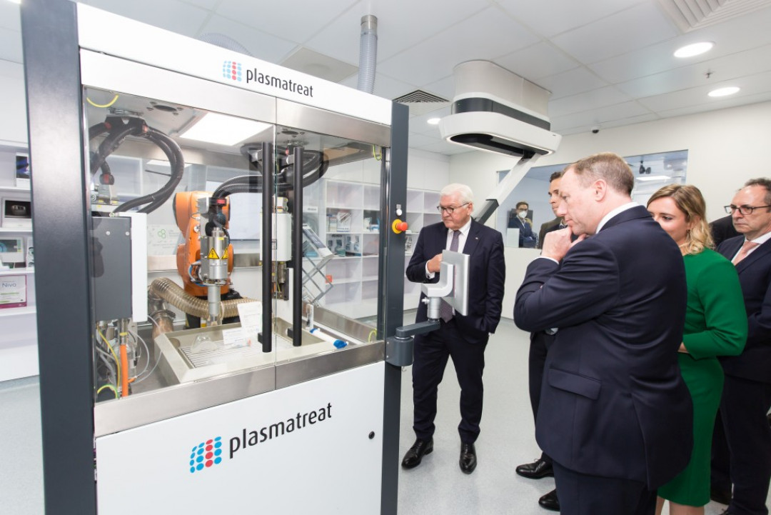 Während seiner Südostasien-Reise besuchte Bundespräsident Frank-Walter Steinmeier am 15.06. das German Centre Singapore. Begleitet von einer Wirtschaftsdelegation ließ er sich insbesondere den Bereich des „Life Science Incubator“ (LSI) zeigen. Dort ist auch die Firma Plasmatreat mit ihren atmosphärischen Plasmatechnologien und -systemen zur Oberflächenvorbehandlung vertreten. Wohl auch vor dem Hintergrund der aktuellen Diskussion um die Gasimporte aus Russland, war Steinmeier sichtlich beeindruckt von dieser „Gas-Alternative“ aus dem ostwestfälischen Steinhagen.