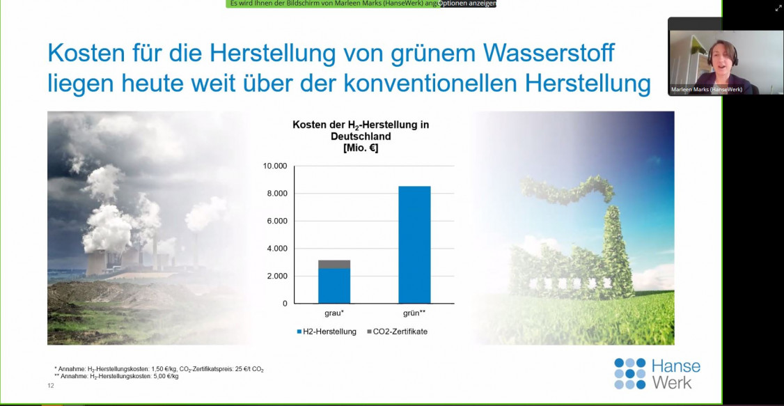 Das im Vergleich zu den bisherigen Präsenztagungen verkürzte und für alle Teilnehmenden kostenfreie Veranstaltungsprogramm war geprägt von einem kompakten Themenmix zeitgemäß-aktueller und zukunftsorientierter Inhalte. Marleen Marks von der HanseWerk AG gewährte in ihrem Impulsvortrag einen Blick in die spannenden Potenziale von grünem Wasserstoff. Dazu muss man wissen, dass sich die Freie und Hansestadt Hamburg zum Ziel gesetzt hat, eine selbsttragende Wasserstoff-Wirtschaft in Hamburg mit einer der weltweit größten Anlagen für die Wasserstoff-Elektrolyse zu entwickeln.