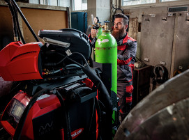 Unternehmen, die Schweißbaugruppen fertigen, müssen sich dem Wandel am Markt stellen: Nur wer auf die zentralen Fragen wie Fachkräftemangel und energieeffiziente Produktion die passenden Antworten findet, wird eine Zukunft haben. Der erste Schritt besteht hier in einer ressourcenschonenden Konstruktion unter Berücksichtigung des Einsatzes effizienter Schweißverfahren. Das Ziel lautet dann, bei so wenig Wärmeeinbringung wie möglich einen ausreichenden Einbrand, das heißt eine gewisse Aufschmelztiefe im Grundwerkstoff, zu erreichen. Viele Schweißverfahren und alte Maschinen brennen allerdings deutlich mehr ein als notwendig ist. Das bedeutet nicht nur die Verschwendung von Energie, eine zu hohe Wärme wirkt sich auch auf die Qualität der Schweißnaht aus und kann eine größere Verformung und Spannungen im Bauteil bedeuten.