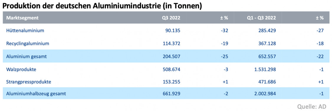 Deutsche Aluminiumindustrie: Weiterer Produktionsrückgang im dritten Quartal