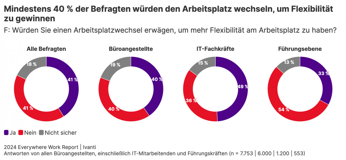„Arbeitgeber, die Top-Talente einstellen wollen, sollten flexible Zeitmodelle bieten“, erläutert Jeff Abbott, CEO von Ivanti. „Um diese hochgefragten Arbeitsregelungen effektiv umzusetzen, sind für die Mitarbeitende die notwendigen Ressourcen, Support und eine sichere Infrastruktur entscheidend. Nur so ist ihr Erfolg gewährleistet. Wer diese Faktoren vernachlässigt, muss mit höheren Fluktuationsraten und Unzufriedenheit rechnen – und zwar genau bei den wertvollen Kräften, die Unternehmen an sich binden möchten.“