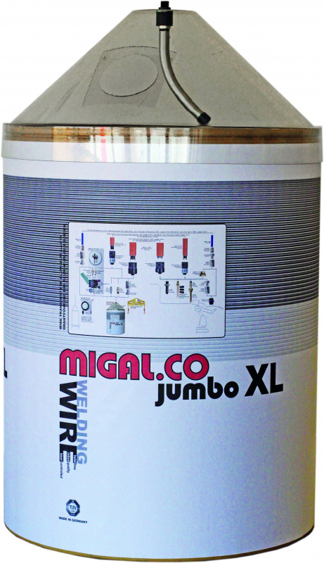 Last but not least haben wir unser Drahtfass JUMBO XL ganz neu auf den Markt gebracht, das für alle Aluminiumlegierungen eingesetzt werden kann und bis zu 240 kg Schweißdraht fasst. Aufgrund des größeren Fassdurchmessers kommt die Drahtelektrode nahezu gerade aus dem Fass und ist deshalb auch besonders gut für das Laserschweißen geeignet.