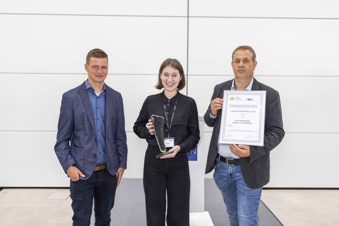 Im Rahmen des DVS CONGRESS + EXPO in der Messe Essen nahmen Johanna Börgel, Ralf Ossege und Jan Wenselowski von der Laumann GmbH den Innovationspreis entgegen. Marcus Nachbauer, Vizepräsidenten des ZDH, würdigte in seiner Ansprache das Potenzial und die qualifizierten Mitarbeiter der Laumann GmbH. „Starke Lösungsorientierung, Pragmatismus und Innovationsgeist zeichnen die Arbeitsweise und Unternehmenskultur der Laumann GmbH & Co. KG aus“, so Nachbauer.