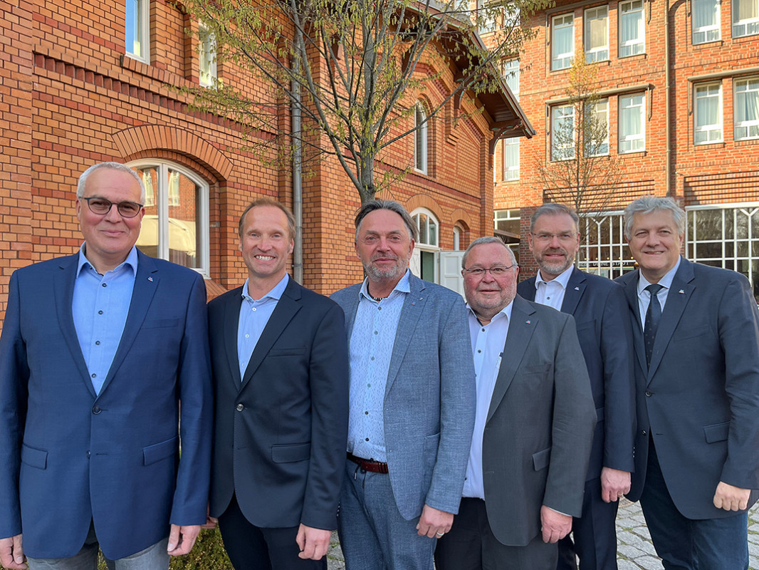 Präsidium des BVM mit neuem HGF Diether Hils nach der Wahl (von li. n. re.: Bernd Loosen, Thoralf Volkens, Willi Seiger, Michael Winterhalter, Diether Hils, Christian Metges) © BVM