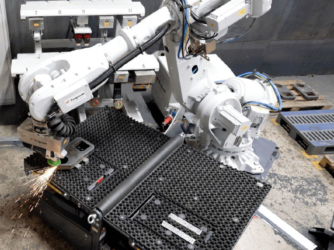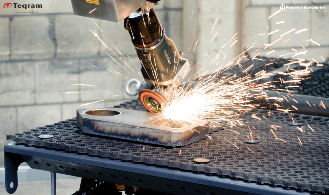 Teqram entwickelt und liefert völlig autonome Robotersysteme zum Be- und Entladen von Entgratungs-, Richt- und Strahlanlagen sowie zum Entschlacken, Schleifen und Entgraten von Blechteilen. Mit dem fortschrittlichen 3D-Vision-System EasyEye und der KI-basierten Steuerung arbeiten die Roboter von Teqram völlig autonom. Sie erkennen automatisch Paletten, Stapel und Produktgeometrien, so dass keine manuelle Programmierung erforderlich ist.