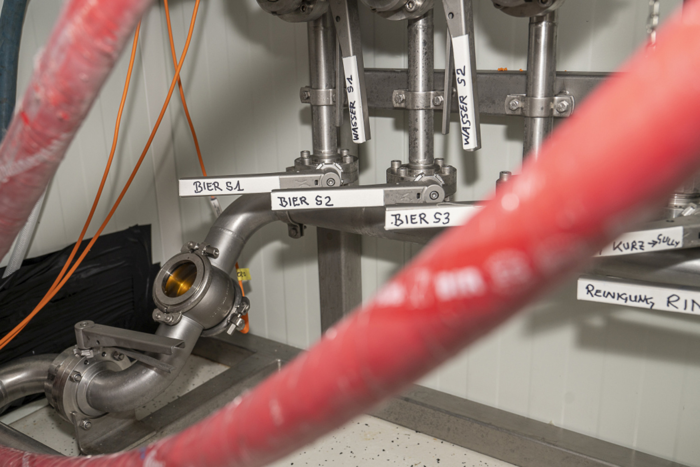 Nicht minder wichtig für das Wohlempfinden der sportbegeisterten Zuschauer ist die Installation einer neuen Bierversorgung, durch die der Gerstensaft konstant mit einer Temperatur von zwei Grad fließt. Möglich macht dies eine 400 Meter lange Ringleitung aus isolierten Edelstahlrohren mit 50 Millimeter Durchmesser. In ihr ist das Bier ständig in Bewegung, damit es keine Kohlensäure verliert. So transportiert sie bis zu 5.000 Liter Bier pro Stunde aus Containern zu den insgesamt 36 Zapfstationen im Stadion. Jeder dieser Container hat ein Fassungsvermögen von 28.000 Litern und wird direkt aus der Brauerei mit Kühlwechselbrücken angeliefert. Ein so genanntes „Maß-O-Meter“– vergleichbar mit einem Tachometer – zeigt Fließgeschwindigkeit, Fehlermeldungen im Rohrleitungssystem sowie die verkaufte Biermenge an.