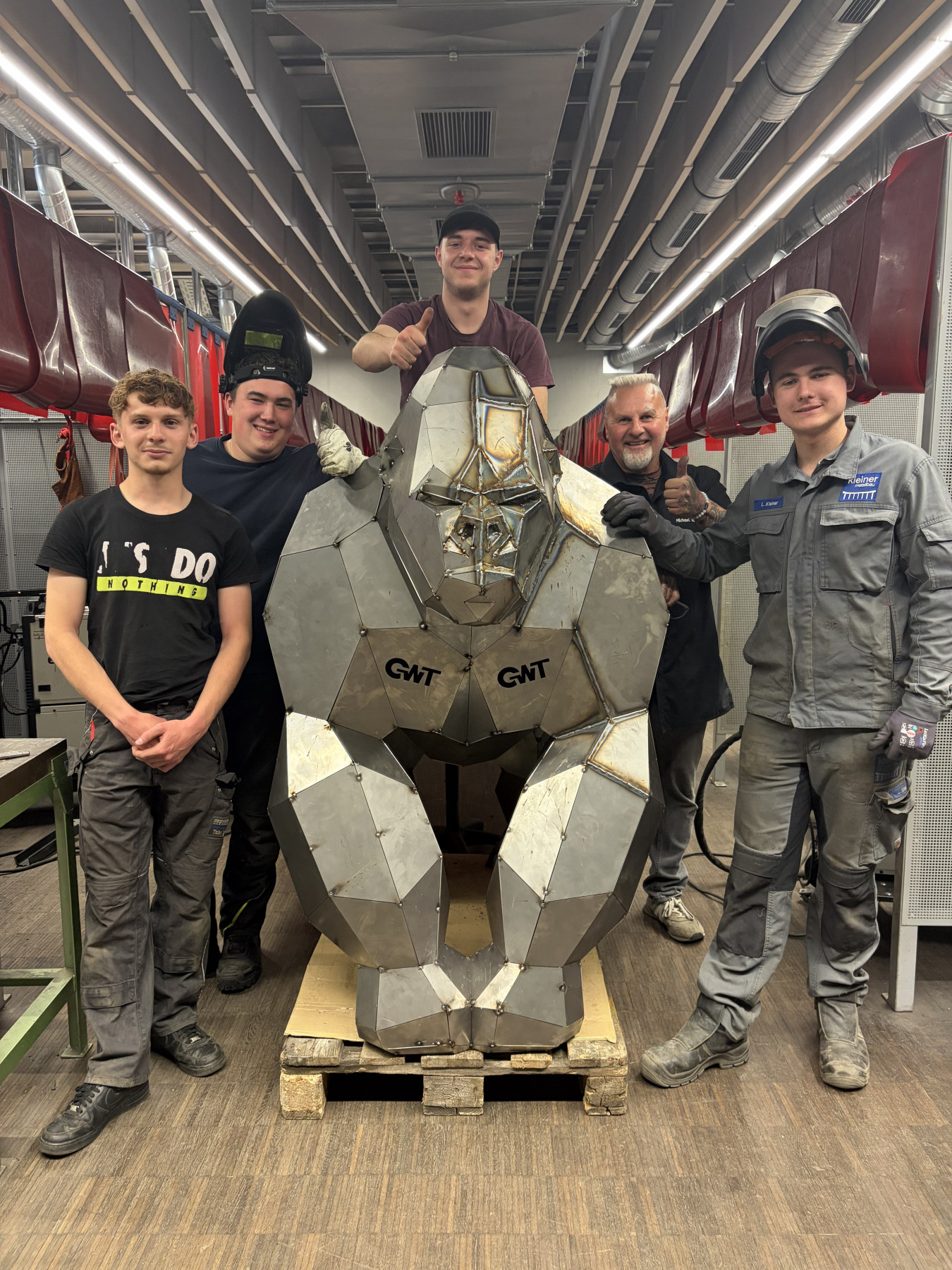 1,60 Meter hoch und 1,40 Meter lang: In der Bildungsakademie Singen haben sechs Metallbauer-Auszubildende im dritten Lehrjahr einen lebensgroßen Gorilla erschaffen. Die Veranstaltung fand im Rahmen eines Aktionstags des DVS-Landesverband Südwest statt, an dem sieben Bildungsstätten in Baden-Württemberg teilgenommen haben.
