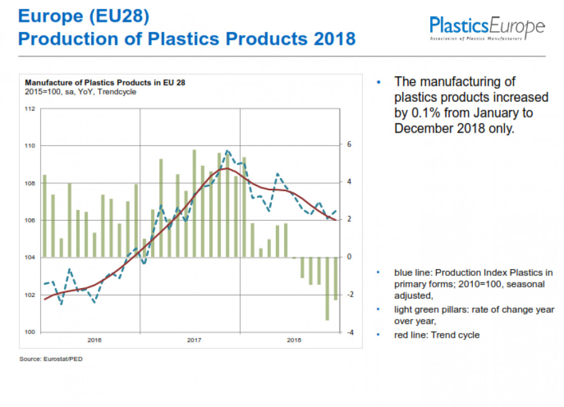 Im Vorfeld der K 2019 hat die europäische Kunststoffindustrie an mehreren Fronten zu kämpfen: Die Wirtschaft bewegt sich insgesamt auf einem gleichbleibenden Niveau, der hinausgezögerte Austritt des Vereinigten Königreichs aus der EU sorgt für Unruhe, wichtige traditionelle Exportmärkte wanken und eine zunehmend drastischere Einstellung der Verbraucher gegenüber Kunststoffverpackungen führen zu übereilten – manche meinen unüberlegten – Maßnahmen seitens der Gesetzgeber, um einen Weg hin zur Kreislaufwirtschaft vorzugeben.