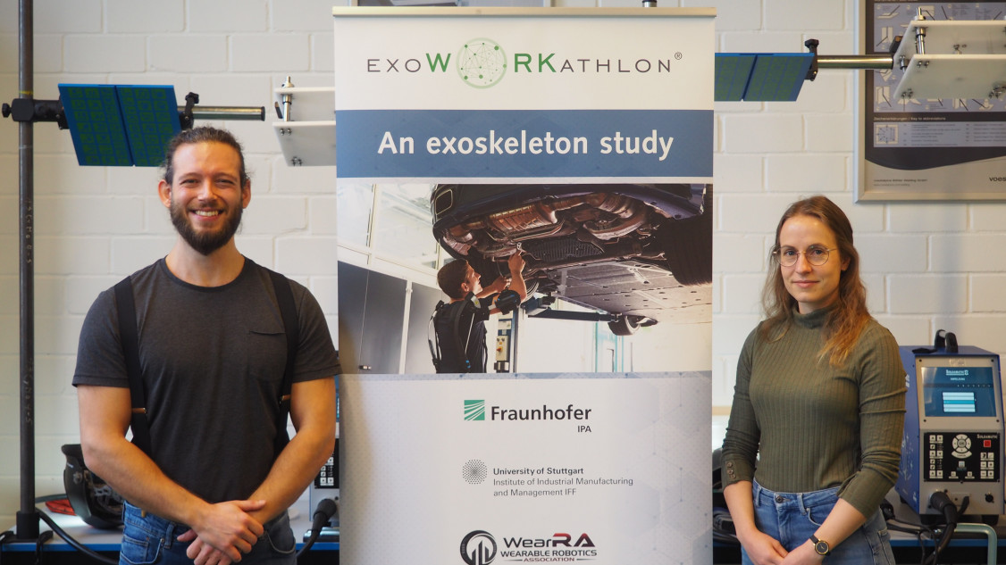 Ein EXOWORKATHLON ist eine wissenschaftliche Life-Studie, in der die Ingenieure Ines und Marco Schalk den gesundheitlichen und vorbeugenden Nutzen von Exoskeletten für schwere körperliche Arbeit untersucht. Für ihre Datengewinnung nutzen sie medizinische Methoden zur Diagnostik der Herzparameter, die für diesen Zweck bisher noch nicht üblich waren. Die beiden arbeiten in den Abteilungen Biomechatronische Systeme des Fraunhofer-Instituts für Produktionstechnik und Automatisierung IPA und Mensch-Technik-Interaktion des Instituts für industrielle Fertigung und Fabrikbetrieb (IFF) der Universität Stuttgart.