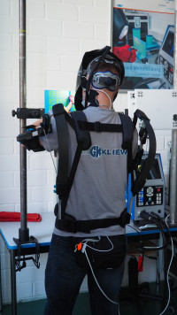 An den virtuellen Schweißständen mussten die Probanden eine Stunde lang in durchaus unbequemen, anstrengenden Positionen arbeiten: direkt vor dem Gesicht und über Kopf. Sie absolvierten zwei Runden: Einmal mit einem Exoskelett, einem Gurtsystem, das wie ein Rucksack umgeschnallt wurde und die Arme unterstützte, das zweite Mal ohne diese Unterstützung. Zwischen den beiden Runden gab es eine Stunde Pause.