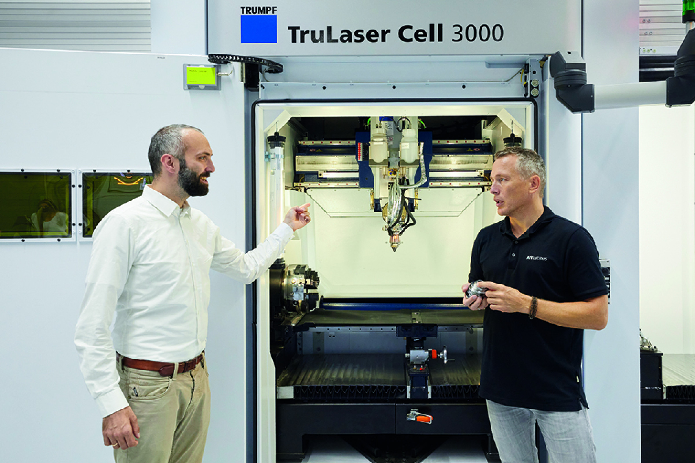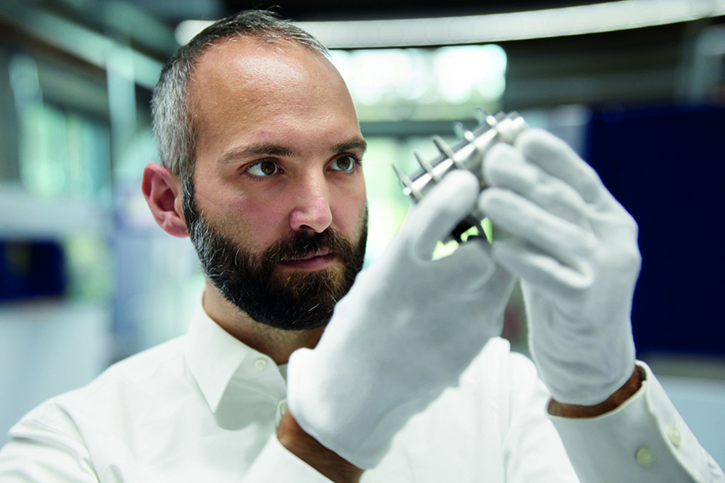 Was halten aber Mitarbeiter von dem neuen Laser-Tausendsassa? Jonathan Krauß, Verfahrenstechniker und Systemverantwortlicher für LMD, freut sich über die neuen Möglichkeiten der cleveren Kombination unterschiedlicher Materialien: „Es entstehen völlig neue Lösungen, die sich konventionell nicht verwirklichen ließen.“ Krauß arbeitet beim Laserauftragschweißen eng zusammen mit LMD-Projektleiter Florian Schlund, den nicht nur die Reparaturmöglichkeiten, sondern vor allem die neuen hybriden Projekte faszinieren: Etwa durch das Verschweißen von zwei unterschiedlichen Werkstoffen zu einem neuen Bauteil.