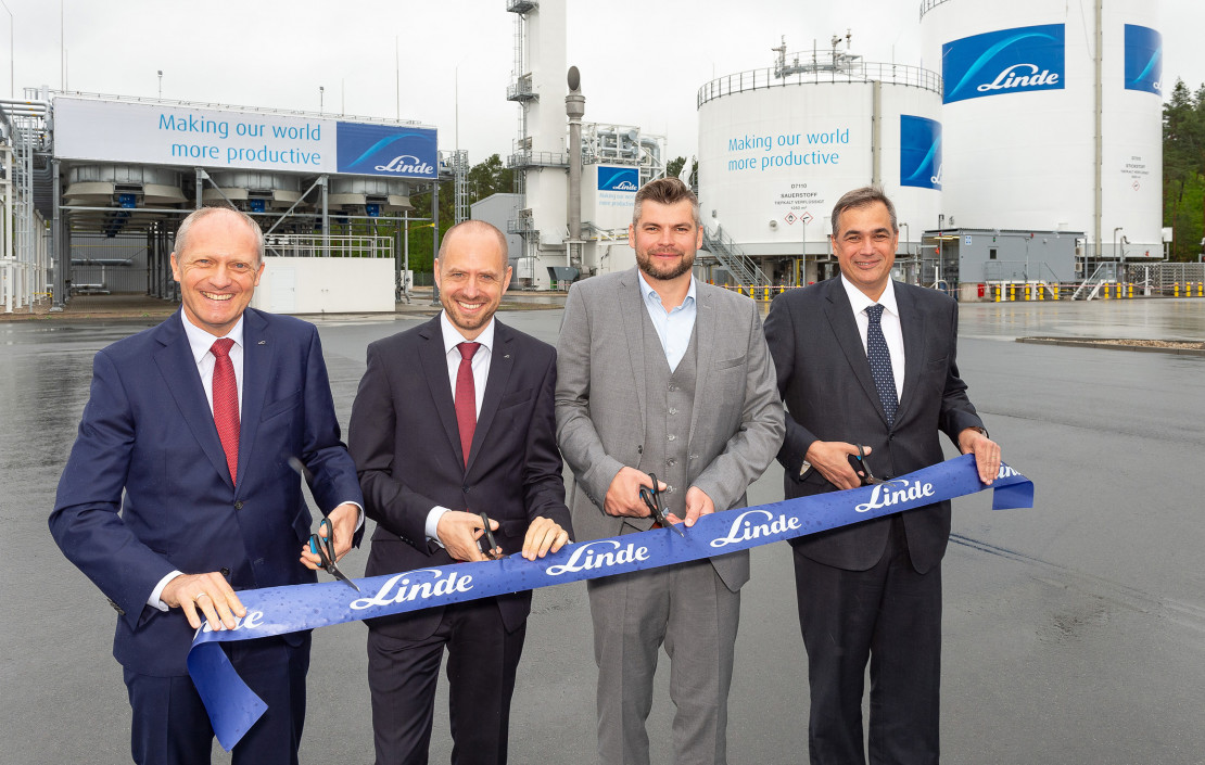 Viele Gäste, darunter Kunden und Geschäftspartner sowie Klaus Hacker, Bürgermeister der Stadt Röthenbach an der Pegnitz, waren der Einladung gefolgt. Die Anlage wurde von den Linde-Vorstandsmitgliedern Dr. Christian Bruch und Eduardo Menezes so wie von Jens Waldeck, Geschäftsleiter Linde Gas Region Zentral Europa, feierlich eröffnet.