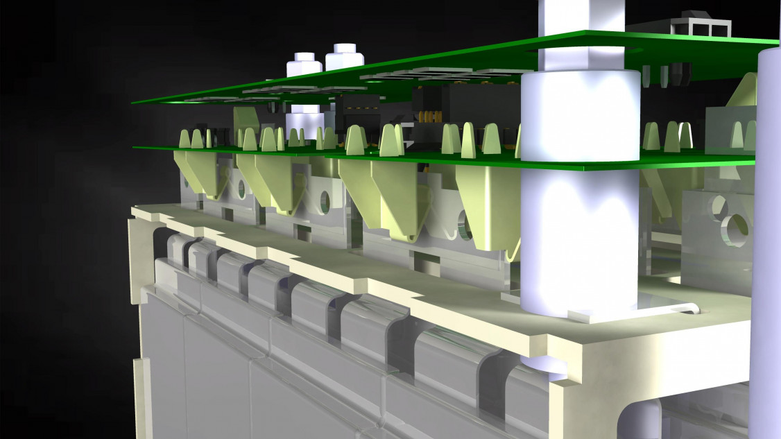 Beim Wettbewerb Formula Student entwickeln, konstruieren und fertigen Studierende in Eigenregie einen Rennwagen und treten damit bei internationalen Wettbewerben gegeneinander an. Das Formula Student Electric-Team der Hochschule Esslingen wurde 2011 unter dem Namen E.Stall gegründet. Aktuell fertigt das rund 30-köpfige Team sein drittes Allradfahrzeug. Eine für das erfolgreiche Abschneiden entscheidende Komponente ist die Antriebsbatterie. Von ihr hängt ab, ob der Fahrer genügend Leistung zur Verfügung hat, um sich gegen die Konkurrenz durchzusetzen. Die im Auto eingebaute Hochvoltbatterie hat eine maximale Spannung von 600 Volt und eine Kapazität von 7,6 Kilowattstunden. Für eine gute und sichere Handhabbarkeit ist sie in zwölf Module unterteilt. Die einzelnen Zellen sind mit sogenannten Busbars, durch die Ströme von mehr als 150 Ampere fließen, in Reihe verbunden.