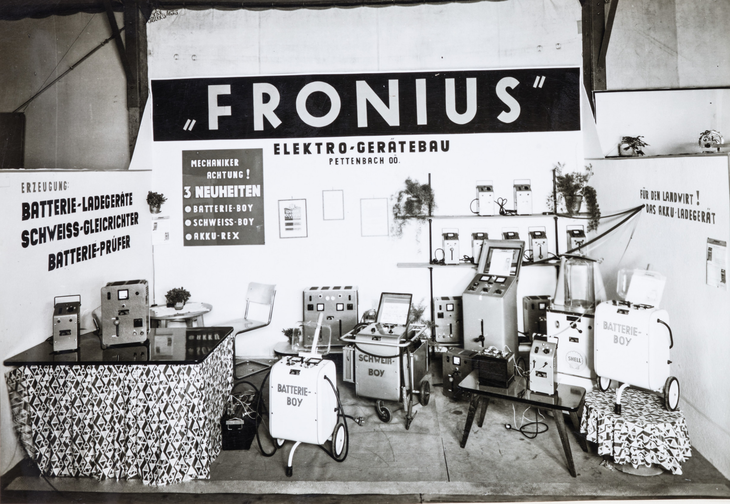 Founded in 1945 as a regional specialist repair shop for radio and electrical equipment, Fronius has grown into a global player in the industry over the past 80 years. Throughout its history, team spirt, perseverance and staying power have always been at the heart of the Austrian family business. It all started on June 20, 1945, when Günter Fronius officially advertised that he would be offering maintenance services for radio and electrical appliances out of a hotel. Not long after, the trained electrical engineer had a revolutionary idea: He built a device for recharging car batteries, allowing them to be used for longer. This first Fronius product was a big hit and was followed by innovative chargers for industrial applications such as forklift batteries.