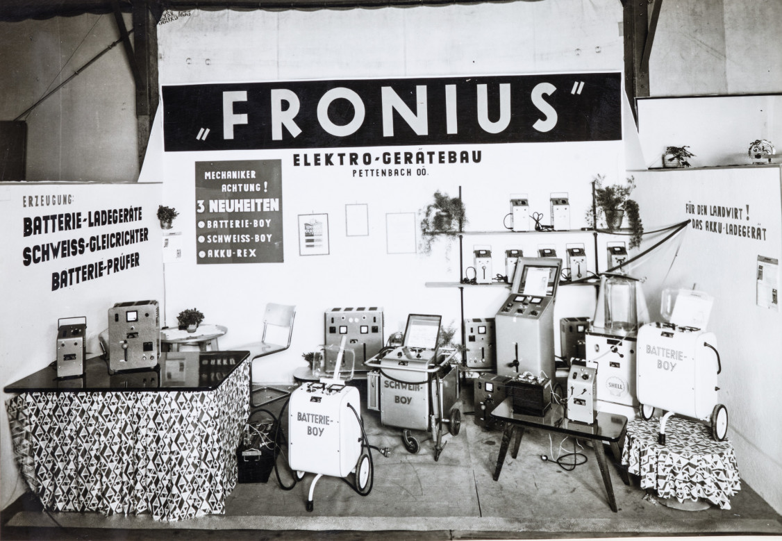 Alles begann am 20. Juni 1945 als Günter Fronius offiziell bekannt gab, dass er im Hause einer Gastwirtschaft Instandhaltungsarbeiten von Radio- und Elektrogeräten anbietet. Kurze Zeit später hatte der gelernte Elektrotechniker die revolutionäre Idee: er baute ein Gerät zum Aufladen von Autobatterien, um diese länger nutzen zu können. Das erste Produkt von Fronius war ein großer Erfolg, es folgten innovative Ladegeräte für industrielle Anwendungen wie Gabelstaplerbatterien.