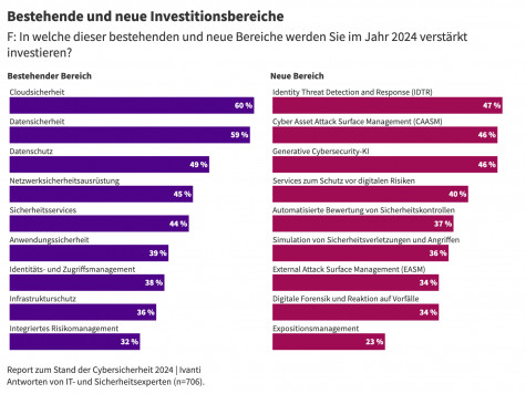 - Jeweils gut jeder Vierte Sicherheitsverantwortliche in Deutschland plant Investitionen in moderne Tools zur Cyberabsicherung wie Identity Threat Detection and Response (ITDR), Cyber Asset Attack Surface Management (CAASM) oder Digital Risk Protection Services (DRPS).