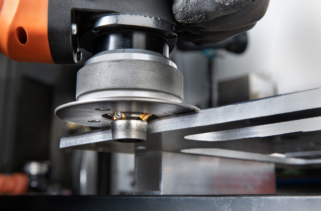 Während die Akku-Maschine den 45-Grad-Fräser für Fasen und Radien fest verbaut hat, können Anwender der zwei netzbetriebenen Maschinen den 30- oder 45-Grad-Fräser je nach gewünschter Anwendung und zu bearbeitendem Material wechseln. Durch das Schnellwechselsystem können die Fräsköpfe in wenigen Sekunden ausgetauscht werden. Zudem sorgt die Flügel-Fräseraufnahme dafür, dass der richtige Fräskopf montiert wird.