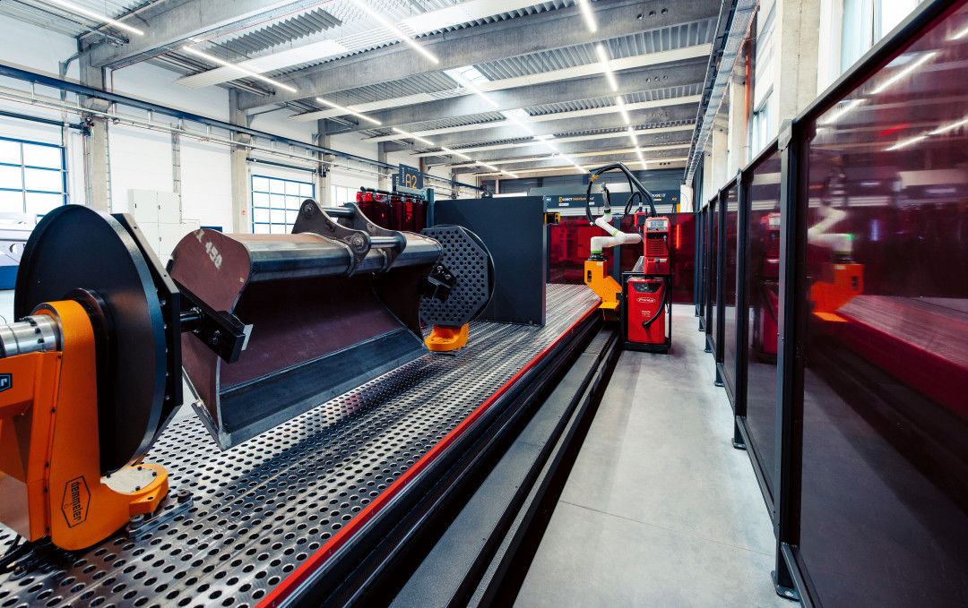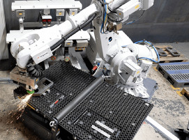 Neben dem intuitiven Programmier- und Bedienkonzept überzeugt die Cobot WeldSpace 4.0 Linear von Demmeler durch ihren einzigartigen Aufbau. Die Anlage ist voll zugänglich: Auf der Vorderseite lässt sich die Schweißerschutzwand komplett wegklappen. Nach oben hin ist die Anlage offen und kann per Kran oder Gabelstapler beladen werden. Die Unterteilung des Arbeitsraums in Space A und B mittels Trennwand schafft einen weiteren Arbeitsplatz und ermöglicht das hocheffiziente Arbeiten im Zwei-Stationen-Betrieb. Geschützt durch die Trennwand kann der Bediener auf der einen Seite Werkstücke rüsten oder auf neue Schweißaufgaben umspannen, während der Roboter auf der anderen Seite schweißt. Das Schweißen mit kollaborierenden Robotern entlastet so wertvolle Fachkräfte vor ermüdenden Routine- und Wiederholtätigkeiten. Denn Schweißen ist eine sehr anstrengende Tätigkeit, bei der man höchst konzentriert arbeiten muss. Auch die körperliche Belastung der Mitarbeiter wird reduziert: Der integrierte Ein-Achs-Manipulator mit Gegenlager positioniert Werkstücke bis 2.000 kg in optimaler Schweißlage, das zeitaufwendige Umspannen von Werkstücken entfällt. „Die Drehachse des Manipulators ist voll in die Robotersteuerung integriert. Die Manipulator- und Roboterachsen verfahren simultan, was eine höhere Effizienz und Geschwindigkeit beim Schweißen gewährleistet“, erklärt Volker Schmid. Das Ergebnis sind perfekte Schweißnähte in gleichbleibender und reproduzierbarer Qualität.