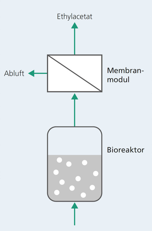 Der Trennungsprozess ist grundsätzlich nicht kompliziert. Im ersten Schritt wird die Melasse im Bioreaktor fermentiert. Der Reaktor wird dabei belüftet, um aerobe Bedingungen einzustellen. Es entsteht ein Gas-Dampf-Gemisch, das als Bestandteil Ethylacetat enthält. Dieses wird dann durch spezielle Kompositmembranen abgetrennt. „Als Abfallprodukt bleibt ein Gas-Wasserdampf-Gemisch zurück, das problemlos in die Umwelt abgegeben werden kann“, sagt Dr. Marcus Weyd, Leiter der Gruppe Membranverfahrenstechnik und Modellierung.