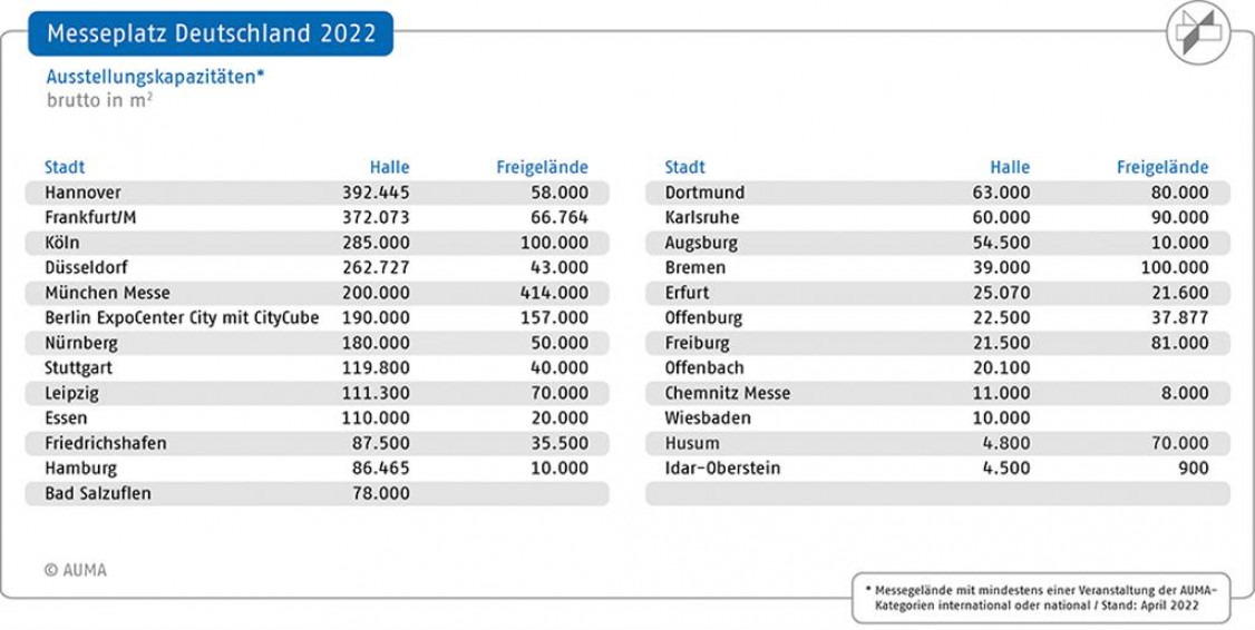 (Quelle: Presseinformation des AUMA – Ausstellungs- und Messeausschuss der deutschen Wirtschaft)