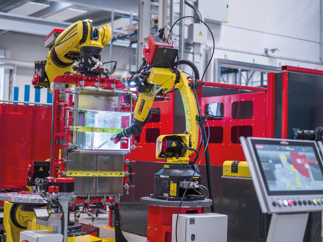 Innerhalb seiner Robot Welding Produktlinie präsentiert Fronius mit HTW die Lösung: Unterschiedliche Aufgaben können somit von einer einzigen Roboterzelle erledigt werden. Die Basis bildet eine modulare Roboterplattform. Die variablen Peripherie-Komponenten garantieren reibungslose Prozesse: Wird etwa ein intelligentes Regallager verwendet, erfolgen Bauteil-Ein- und -Austransport vollautomatisch. Das erhöht wiederum die Prozessautonomie des gesamten Schweißsystems. Statt wie bisher unterschiedliche Positionierer und Schweißsysteme für unterschiedliche Komponenten einzusetzen, übernimmt die modulare Roboterzelle nun alle Schweißaufgaben. Das spart Zeit und Personalkosten.