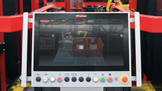 Für größtmöglichen Bedienkomfort setzt Fronius seine durchdachte Systemsteuerung ein: Die HMI T21-RS ermöglicht die Überwachung und Koordination aller Komponenten wie Roboter, TPS/i-Schweißstromquelle, Positionierer, Regalsystem oder Brennerreinigung. Ein 21-Zoll Touchscreen macht die Bedienung intuitiv, komfortabel und zeitsparend.