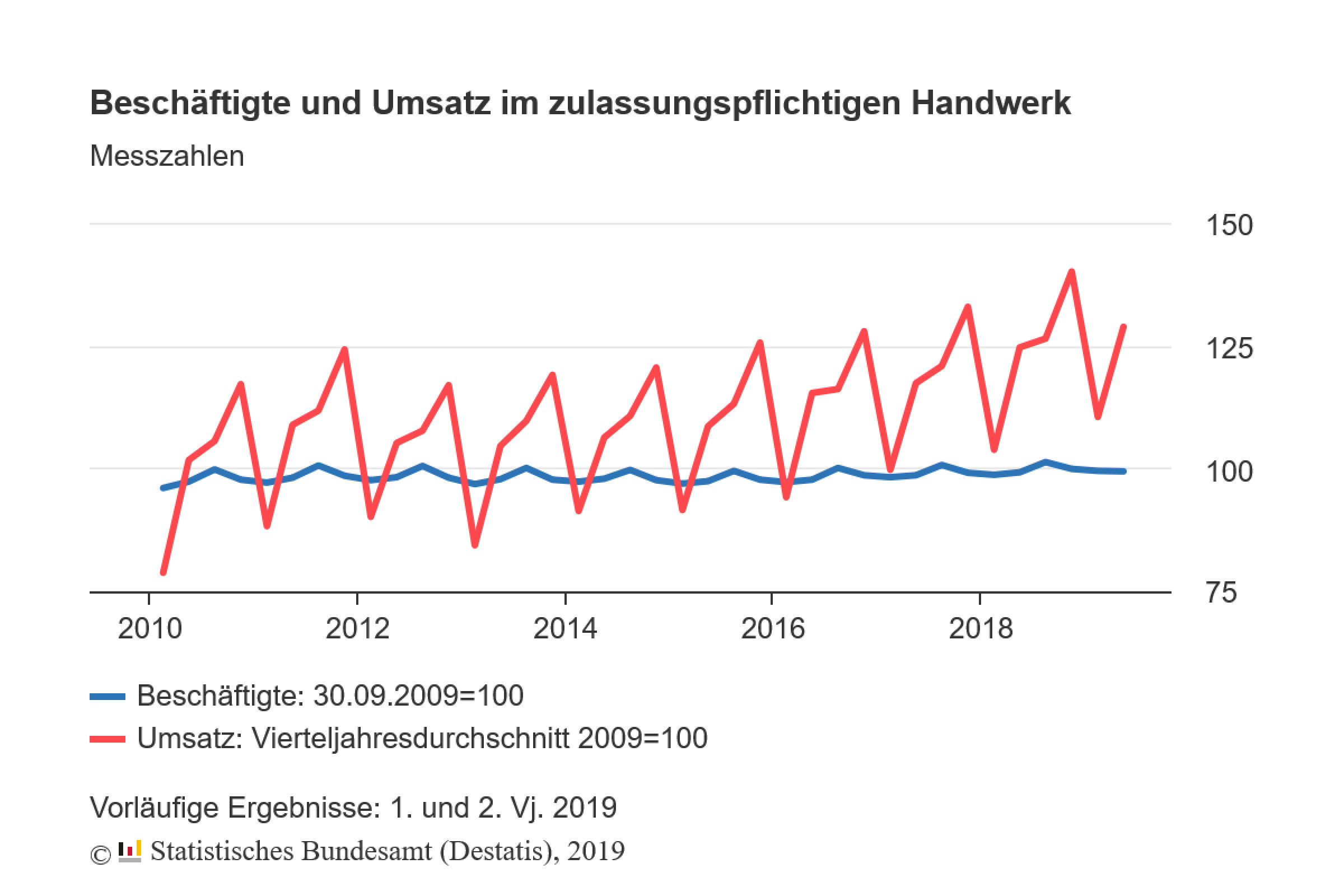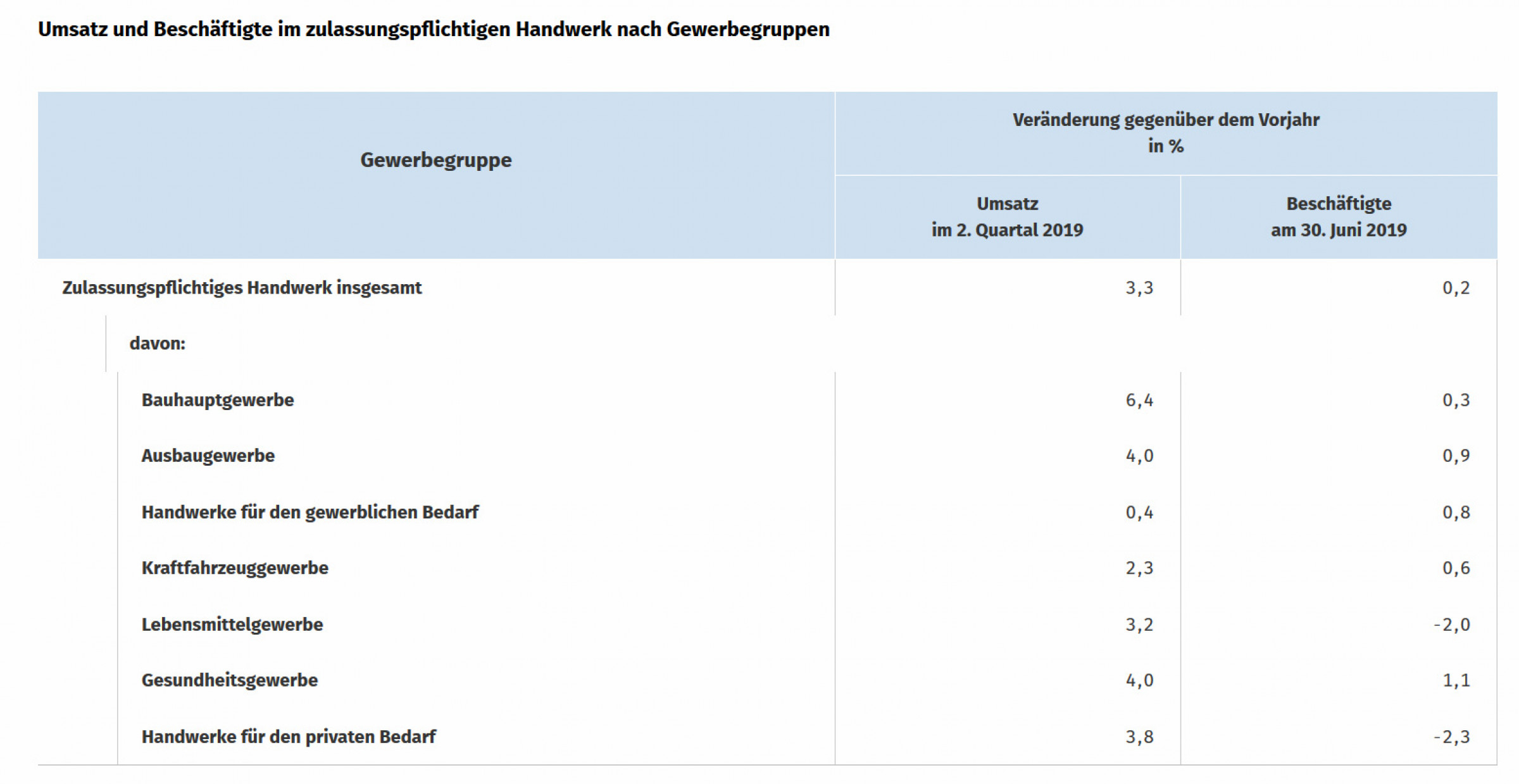 Detaillierte Ergebnisse über die konjunkturelle Entwicklung des Handwerks enthalten die Tabellen der Handwerksberichterstattung (53211) in der Datenbank GENESIS-Online abgerufen werden.